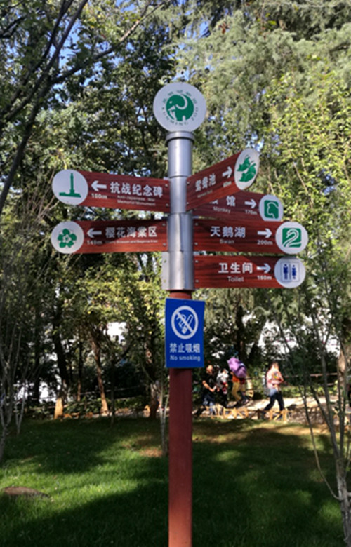 室外标识设计,在设计方案或多种材料配搭的标识时,要从物理的视角去剖析各种各样材料的特性,以挑选较好的配搭方法。比如二种金属复合材料可以用电弧焊接的方法开展联接,而夹层玻璃与金属材料中间能够挑选粘胶或地脚螺栓固定不动等。在西安标识牌制作看来材质的选择也直接关系着标牌系统的安全稳定。例如在游泳池旁,由于地滑容易造成人们摔倒,这种环境下的标识如果使用很硬的材质就很容易伤害到人,此时就应该尽可能使用较软的材质,如木质材料等。