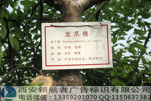 我们西安领航者标识牌制作公司来介绍一下树木标识牌的作用,如下: