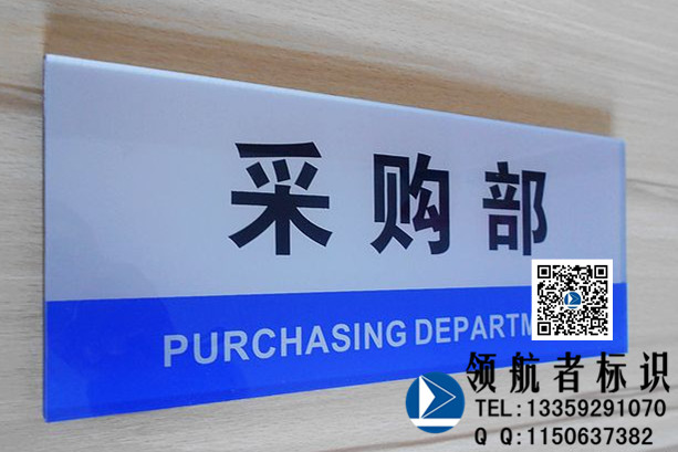 在具体的设计中,企业办公室标识牌可以综合企业的经营理念,文化思想方面来进行元素的提炼,在办公室标识牌中融入新的创意,使之个性化,更能提升形象。材质方面也可选择较为亲和的,根据多方面因素来考量。且办公室标识牌的悬挂位置要合理,识别性高。