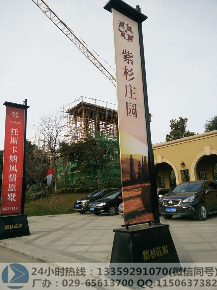 西安标识牌制作厂可以根据客户要求,定制加工各种类型道旗产品,道旗画面可定制,交付客户使用后,我们也为您提供画面更换服务。