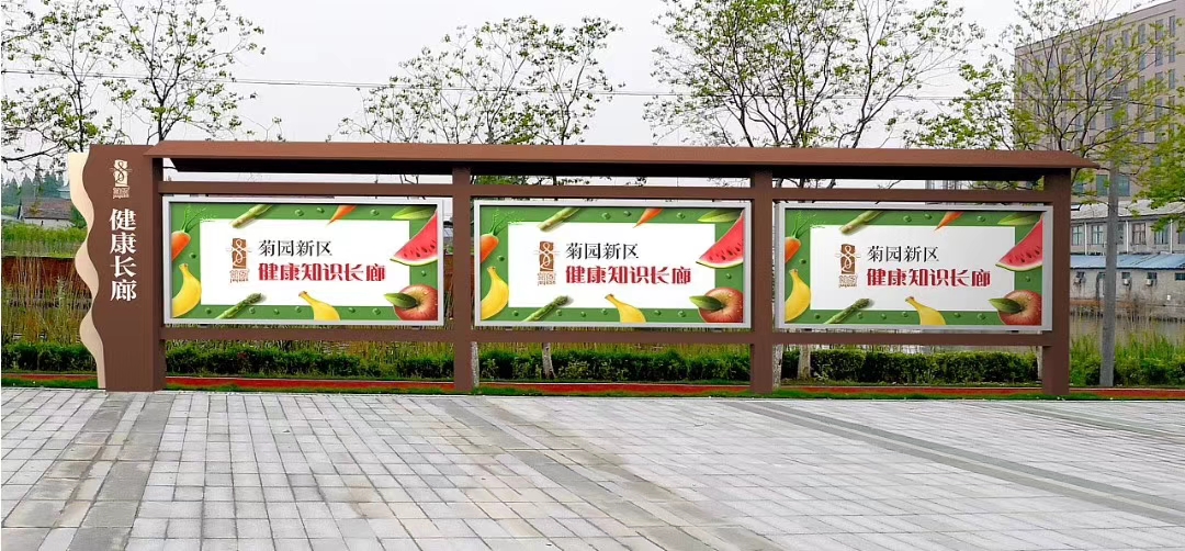 宣传栏为了遮挡阳光和雨水,一般会有顶棚。