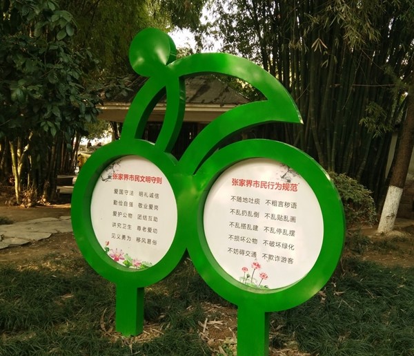 图示是人对视觉信息的第一感知对象,而后才会通过文字来确认信息,这是一个必经的认知过程。文字信息虽不及图示直观快速,却更为准确,因此西安标识牌制作在设计时需要将信息内容与载体空间进行精心编排,配置好字号、字距、线条粗细的结构关系,使其达到视觉平衡。另外,公园中娱乐场所的标识设计在字体上应考虑儿童的视觉认知特点,健身场所的标识则应考虑老年人的视力问题,在字号和线条粗细上应有所考究。在汉字优先的原则下,外文解说应更加规范,满足不同人群的阅读习惯。