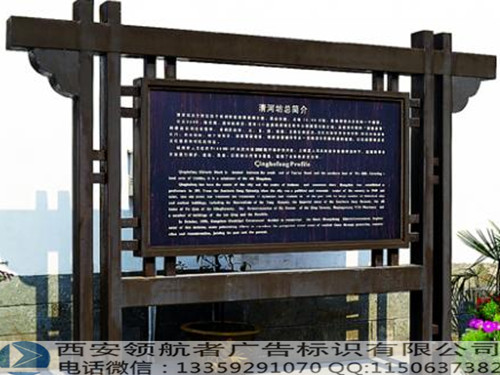 人总是被美的东西所吸引,美的事物给人以享受,给人以联想。反过来,人的审美需求也促使设计者更多地去考虑到如何吸引人、陶冶人。所以,审美性作为人们思想与文化的需求是不可或缺的。设计师在进行设计创造时,应考虑到环境的文化与品味,把这一内容凝练地体现在标识牌之中,让标识牌就如衣服上的装饰一样精致,使环境的品质得到进一步的解析与升华。在西安标识牌制作中,在标识牌设计阶段,要充分应用美学方面的理论,让标识牌展示出美的一面。