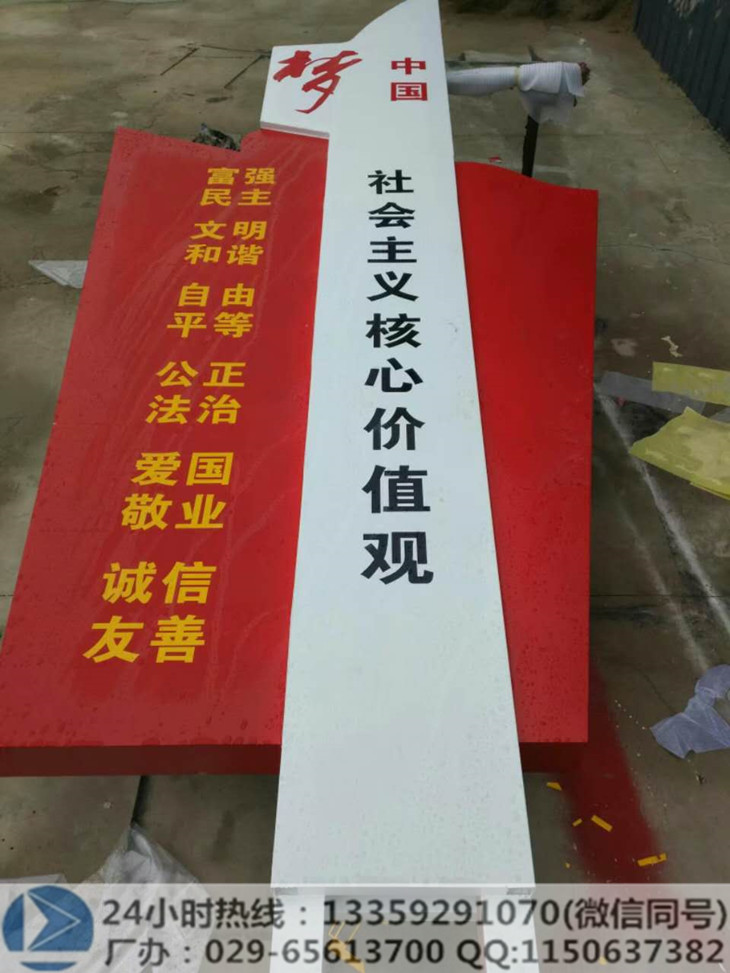 图1:铜川市不锈钢造型核心价值观宣传栏喷漆中