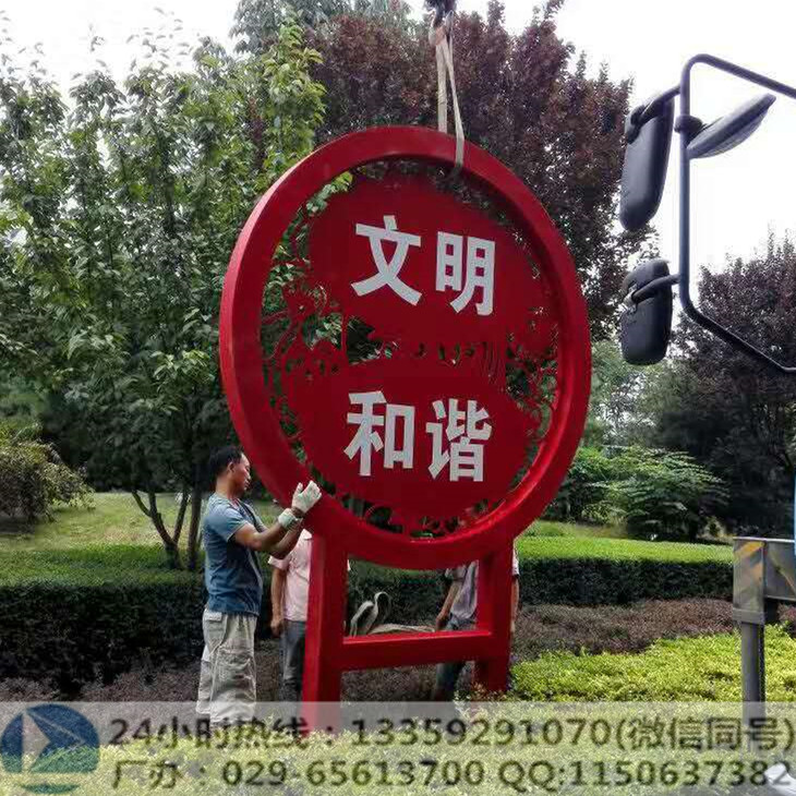 本厂自2015年起开始制作社会主义核心价值观宣传栏、金属造型的制作。目前我们已经为多个地区制作了数百个社会主义核心价值观宣传栏雕塑精品。核心价值观宣传栏及造型的制作均采用优质不锈钢制作而成。图文以核心价值观24字为主,饰以简单纹饰,着重突出富强、民主等24字。