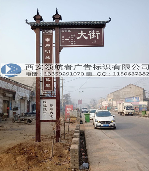 在山西大名县村牌村标制作项目中,我们西安领航者广告标识有限公司根据客户的需求为其提供了特色的村标产品,在项目紧急工期的要求下,经过不断的沟通,我们将设计、制作、安装工作并行,克服重重困难,最终保质保量的完成了项目。