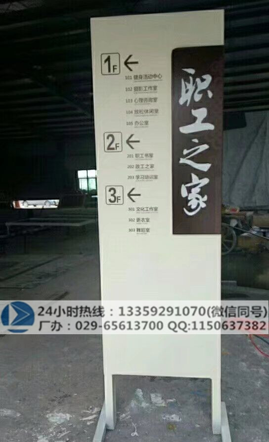 在西安导视牌制作厂家中,一般将导视牌按其所处环境可划分为立式、卧式、悬挂式、贴墙式、立面镶嵌、立面半挑、移动立牌、桌面立牌等。